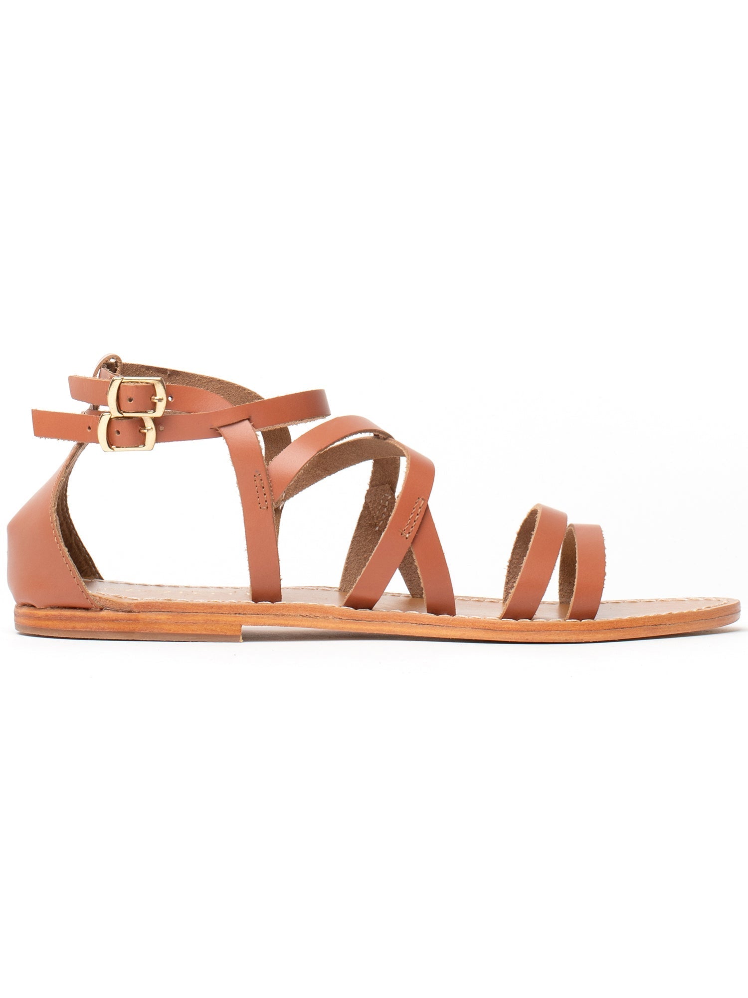 Au design chic et épuré, la spartiate Iponema se distingue par une empeigne en cuir camel avec de fines brides entrecroisées qui magnifient le pied. Tout en finesse, elle vient se fermer autour de la cheville par une boucle dorée.